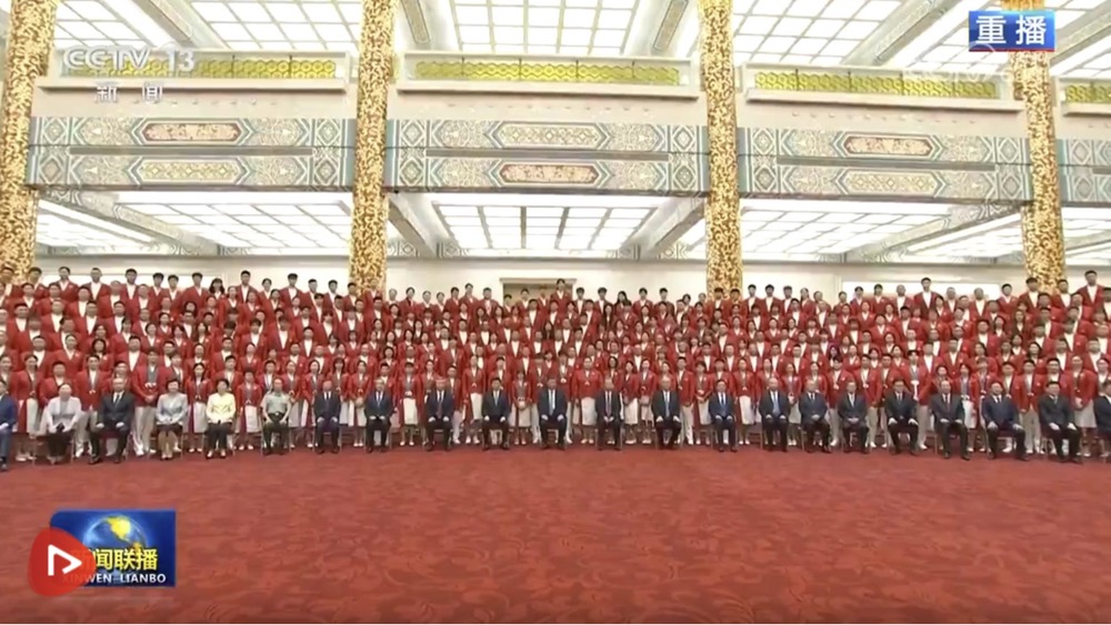 习近平指出,中国体育代表团的优异成绩,将中华体育精神和奥林匹克精神发扬光大,让中华民族精神和时代精神交相辉映,生动诠释了新时代中国精神。赛场上,大家牢记党和人民重托,“国家荣誉永远超过个人”、“我的这块金牌献给伟大的祖国”等誓言掷地有声,展现了祖国至上、为国争光的赤子情怀,展现了顽强拼搏、自强不息的必胜信念,展现了团结协作、并肩作战的宝贵品质,展现了中国青年一代自信乐观、热情友好的阳光气质。你们让全世界看到了中华优秀传统文化的深厚积淀,看到了中国开放包容、昂扬进取的时代风貌,看到了中国人民的志气、锐气和底气。祖国和人民为你们骄傲,为你们点赞。