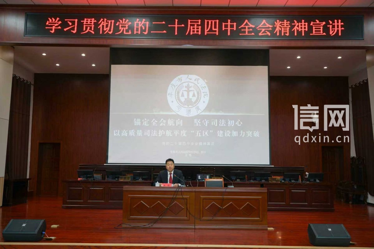 他强调,一是要在深化学习领会上下功夫,凝聚思想共识,持续把学习贯彻党的二十届四中全会精神作为重大政治任务,坚持学用结合、学以致用,切实把学习成果转化为推动工作的强大动力和具体举措;二是要在服务中心大局上见实效,彰显司法价值,紧紧围绕平度“五区”建设重点任务,找准司法服务保障的切入点和着力点,精准对接经济社会发展需求,以高质量司法服务高质量发展,为平度经济社会高质量发展注入司法动能;三是要在提升审判质效上出硬招,增强司法能力,聚焦“公正与效率”工作主题,以提升审判质效为核心,不断提升司法能力和水平,加强审判管理,严格审限管理,强化案件质量评查,规范裁判文书释法说理,不断提升审判质量,强队伍专业化建设,提升干警专业素养和审判业务能力;四是在全面从严治院上动真格,永葆司法本色,始终坚持全面从严治党、全面从严治院,以严的基调、严的措施、严的氛围,锻造忠诚干净担当的过硬法院铁军,加强纪律作风建设,加强司法作风建设,规范司法行为,提升司法形象,增强司法公信力和群众满意度。(通讯员 谢佳铭 记者 戴洁)