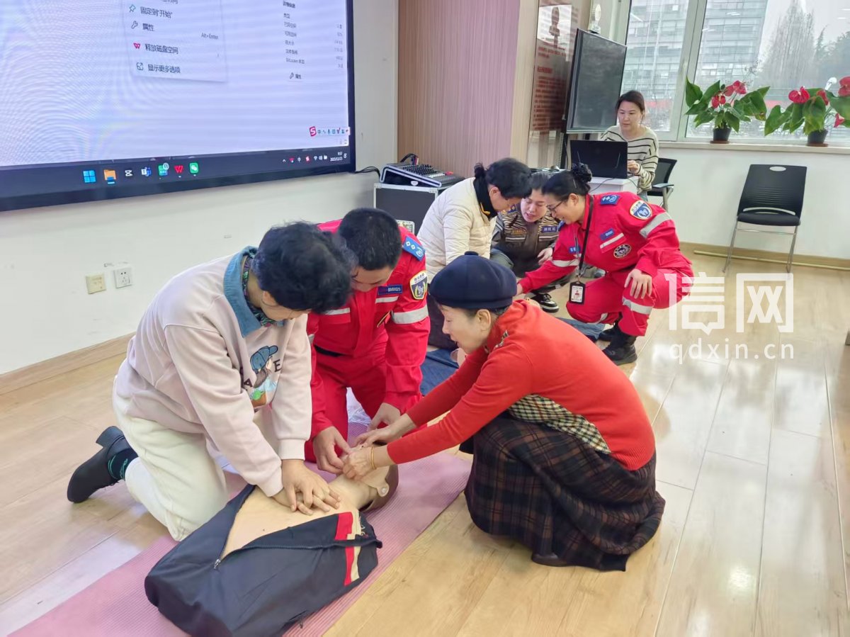 23日,岛城迎来一场中雨,虽然天气寒冷,仍有十余位居民如约来到石岭路社区新时代文明实践站。居民王女士是专程来学心肺复苏法的,在跟其他居民的交流过程中,王女士表示心肺复苏法应该学一学,很有意义。石岭路社区的工作人员介绍,相比于市内其他社区,石岭路社区居民人数不多,总共下辖6个居民小区,常住人口4000余人,其中多为退休教师、机关工作人员,居民对文化生活和文明实践类的活动需求较高。实践站内的各活动室每天都有文艺团体开展活动,社区的太极拳队、合唱团和舞蹈队在市、区、街道等各级比赛中屡创佳绩。社区也积极链接社会各界资源,给居民们带来精彩纷呈的文明实践活动,许多居民跟王女士一样,对应急救援这类实用技能很有兴趣。