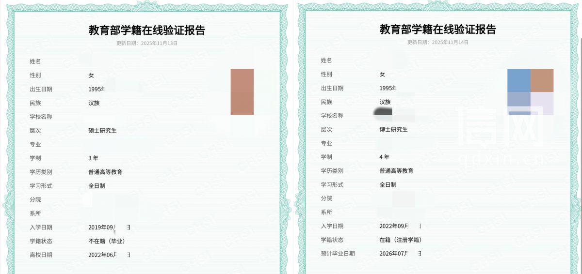 王女士提供的其本人在教育部学籍在线的验证报告。(来源:受访者)