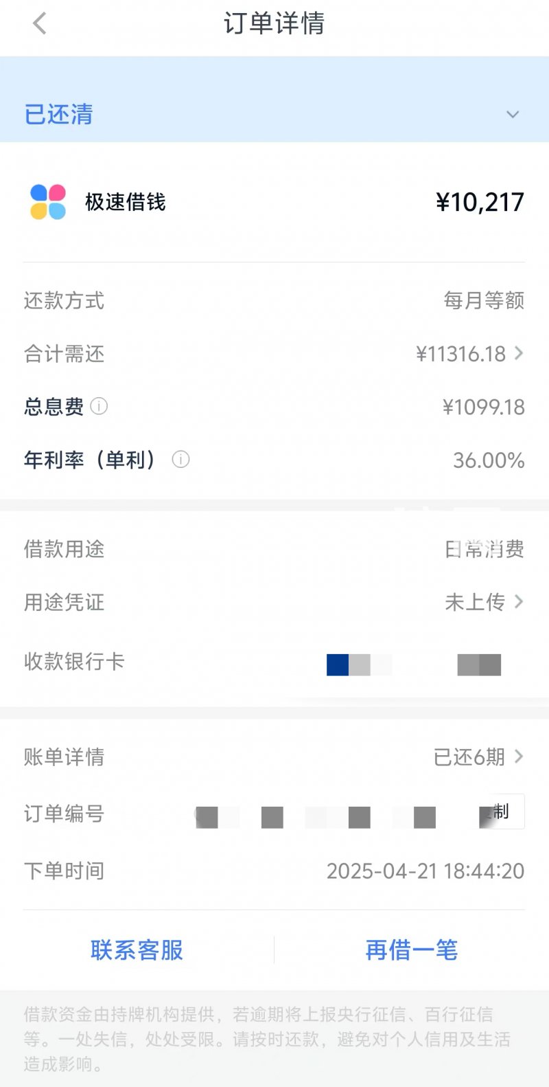 王女士告诉信号新闻,2025年4月她在一平台借了10217元本金,分6个月等额本息偿还。这笔借款的利息是128.56元,还有970.62元担保费。“这笔担保费我借钱的时候并不知道,是后来翻账单、找合同的时候才注意到,加上担保费,总息费1099.18元,这笔借款的年利率(单利)达到了36%。”