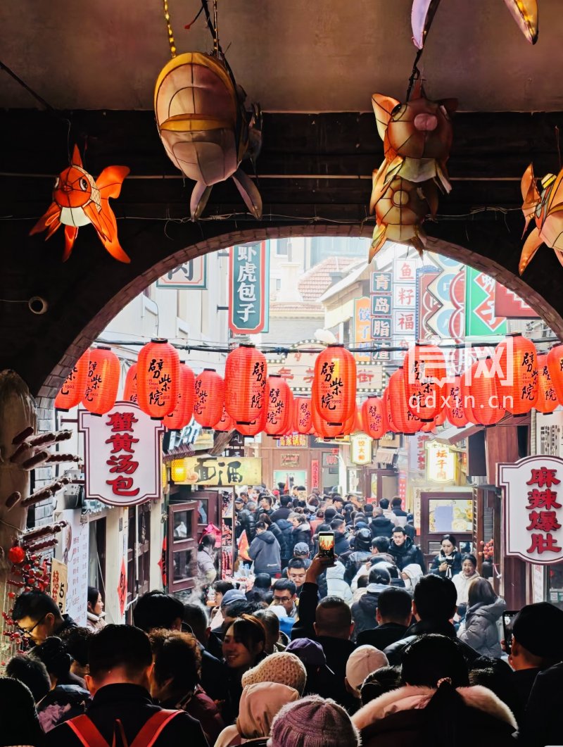在李村商圈的维客星城,穿着Cosplay服装的年轻人围在潮玩店前挑选新春限定手办;在中山路的百年里院外,游客举着相机记录老字号店铺的新招牌;在银鱼巷的咖啡店里,年轻人把玩着刚入手的文创产品……