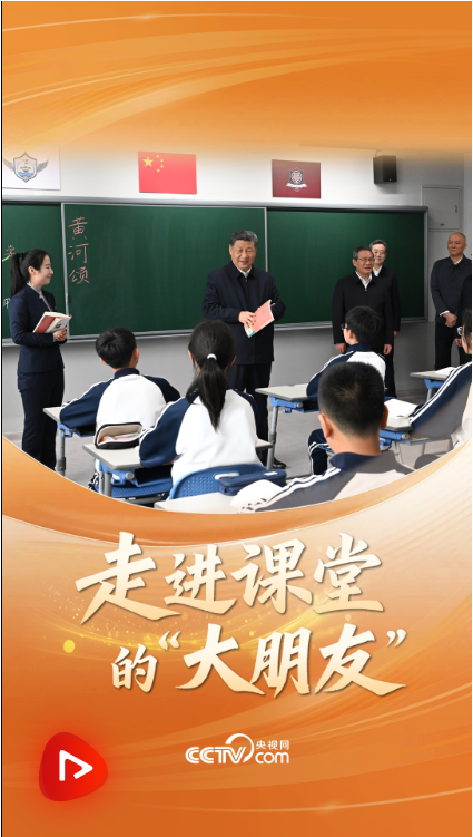 在初一(2)班教室,总书记驻足倾听孩子们诵读《黄河颂》。随后,他走上讲台同孩子们互动交谈,了解教学情况。总书记希望孩子们惜福奋进、积极向上,与雄安新区一起成长,与中国式现代化同步发展。