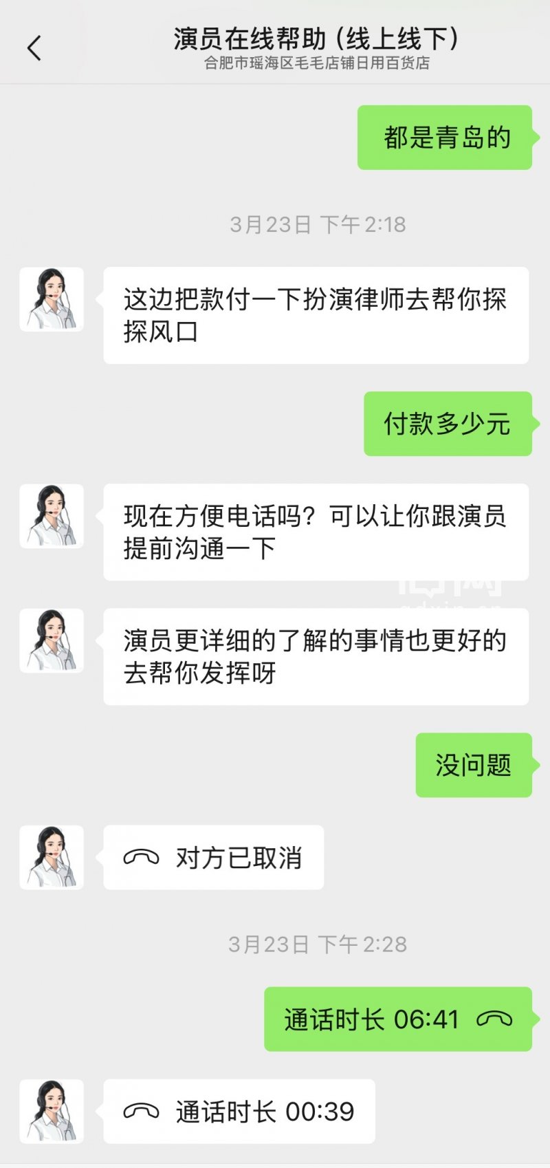 信号新闻以“朋友欠款不还”为由,询问是否可以帮忙催收。认证为“合肥市瑶海区毛毛店铺日用百货店”的企业微信回复称,他们的服务就是安排专业“演员”进行电话或短信沟通,演员可以根据客户需求扮作本地律师或法院工作人员,所用号码均为真实号码,确保对方回拨时能快速接听,模拟真实的司法沟通场景。“我们不是随便编个律师身份,而是用真实的律师信息去对接,对方就算问律师证号、律所名称,我们都能答上来,成功率非常高。”