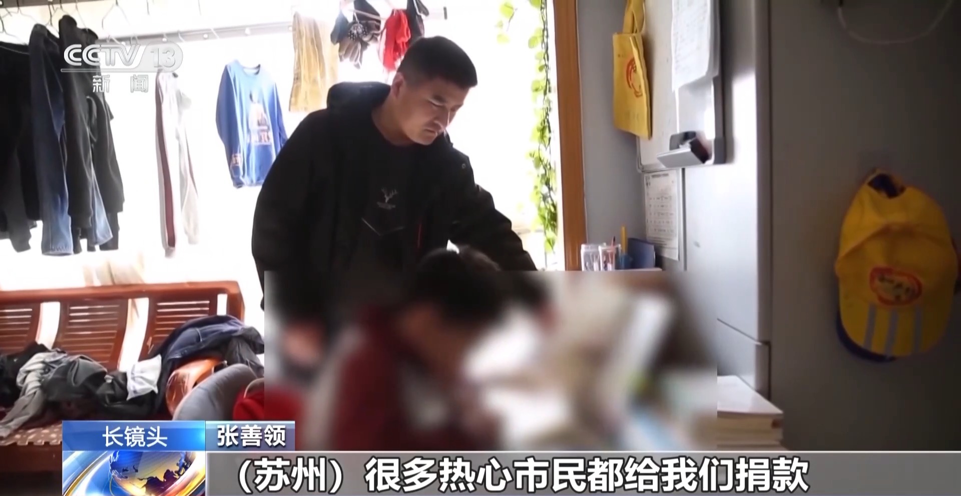 张善领:苏州很多热心市民都给我们捐款,一开始我们不要,后来他们说你们暂时困难,我们可以帮你暂时渡过这个难关,等你以后有能力了,也能帮助身边需要帮助的人。我们一共收到捐款是5万多元。