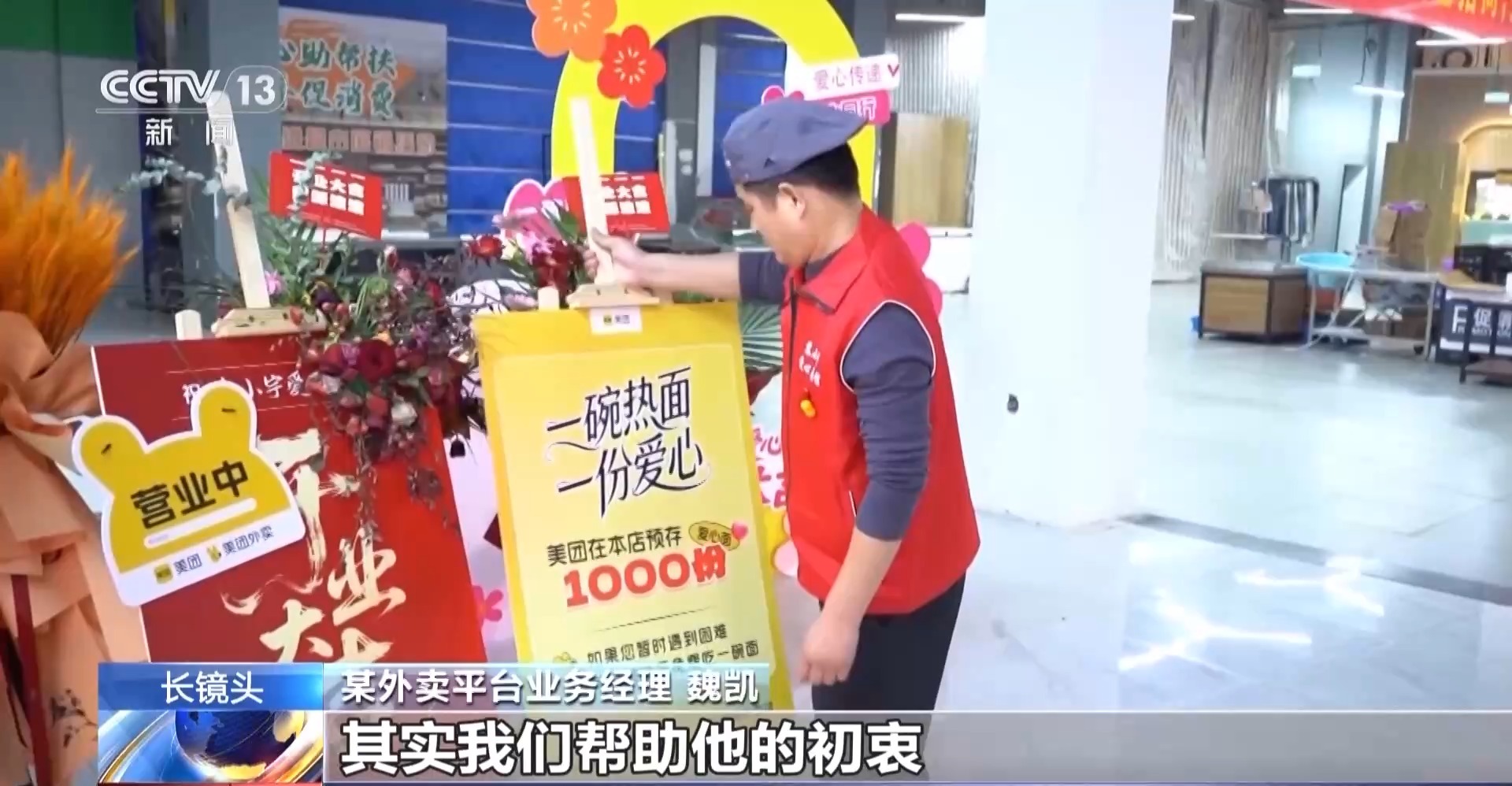 某外卖平台业务经理 魏凯:其实我们帮助他的初衷,本身因为我们在做这个事,其次确实看到张哥自己很困难,还在帮别人,我们就想搭把手帮帮他。通过包括外卖、团购,以及一系列线上线下的运营,帮他引来一部分线下的客流。外卖我们现在已经给他申请了,给他把店铺等级做了提升,也给他做了佣金的减免。