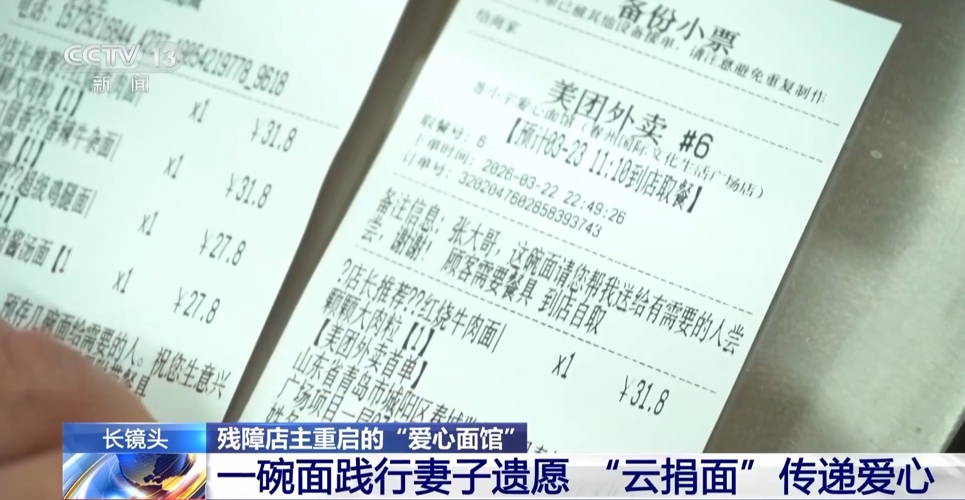 原标题:残障店主重启“爱心面馆” 各地网友“云捐面”传递爱心