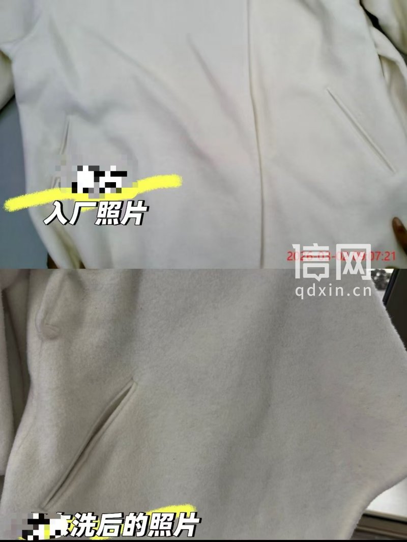 “这是我的订婚装,只穿了一次,就被洗坏了。”胡女士告诉信网,这件米白色大衣是2025年12月29日买的,是她为一月份的订婚仪式准备的正装。仪式过后,再没穿过。2月25日,胡女士在一家电商平台的官方旗舰店预约了79元4件的洗衣服务,这件订婚装也被她一起送洗。