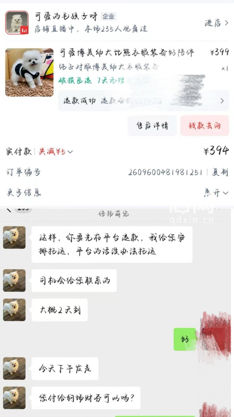 截至发稿,李女士既没有收到自己挑选的宠物狗,钱也没拿回来。(信网记者)