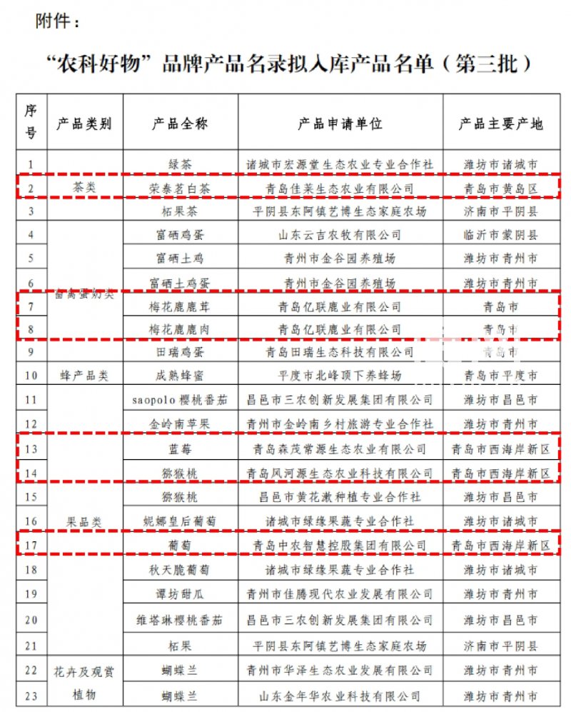信网4月28日讯 近日,山东省农业科技转化促进会公布第三批“农科好物”品牌产品名录拟入库名单,全省共有79款农产品入选。其中,青岛西海岸新区9款农产品脱颖而出,成功上榜。