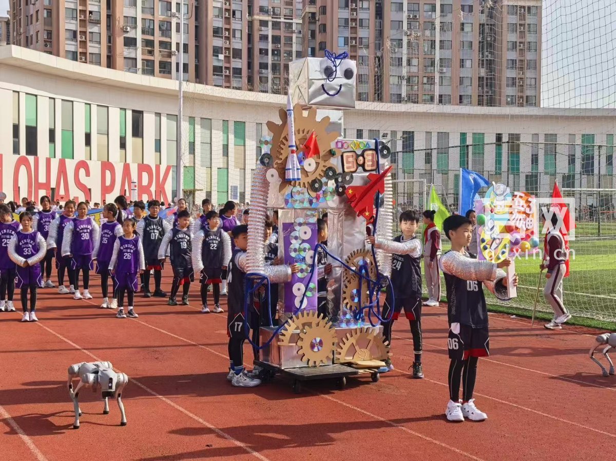 机器人、机器狗一起走方队 青岛这所小学“科创+体育”燃爆运动场