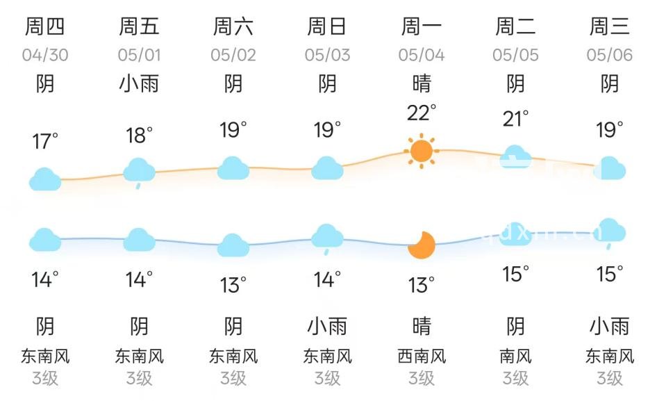 据气象部门预测,“五一”假期青岛天气以多云为主,局部或有降雨,整体风力偏小,气温在12℃至22℃之间,气候条件适宜市民游客外出游玩。