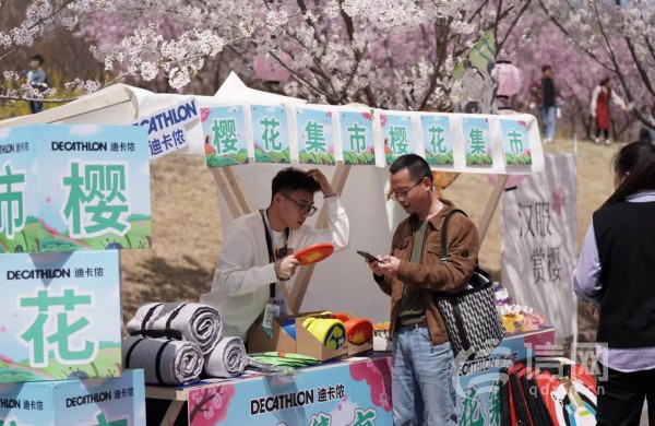 卡通大巡游将全场气氛引向高潮,《爱丽丝梦游仙境》中梦幻可爱的爱丽丝和兔子、《熊出没》中憨态可掬的熊大熊二、《冰雪奇缘》中美丽优雅的艾莎和安娜等卡通人物云集于此,让樱花大道更添几分梦幻。这份“惊喜”让孩子们忍不住欢呼雀跃,纷纷与卡通人物亲切合影留念,在父母的镜头中记录下纯真的童年时光。迪卡侬亲子露营小摊旁,家长为孩子挑选着绘有卡通柠檬的可爱飞盘,摊位上还准备了飞镖盘与野餐垫等露营物品供亲子使用。